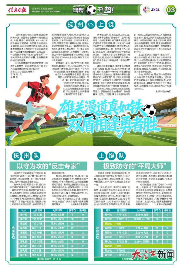 先来看抚州队的防守体系。他们的防守堪称“铜墙铁壁”:门将刘灏是“最后一道防线”的守护神,面对单刀能飞身扑救,近距离射门同样反应神速,前两轮对阵南昌队、景德镇队时,正是他的多次神扑,才守住平局;后防线的队员更是“防守硬汉”,不但能卡位拦截,而且面对强壮的对手也能顶住对抗,将对手的进攻路线彻底封死。