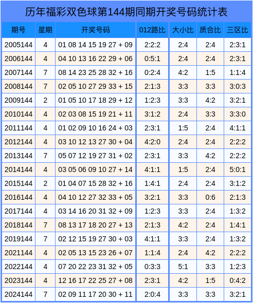 历年第2025144期双色球数据统计表